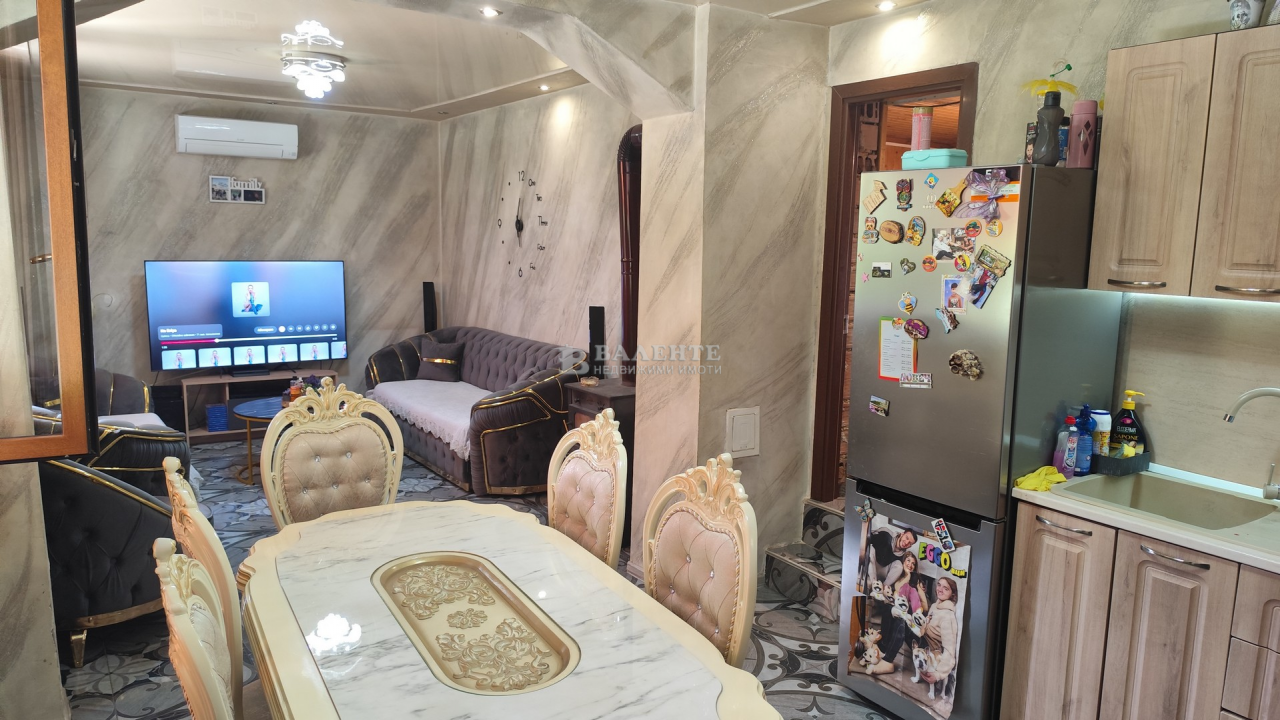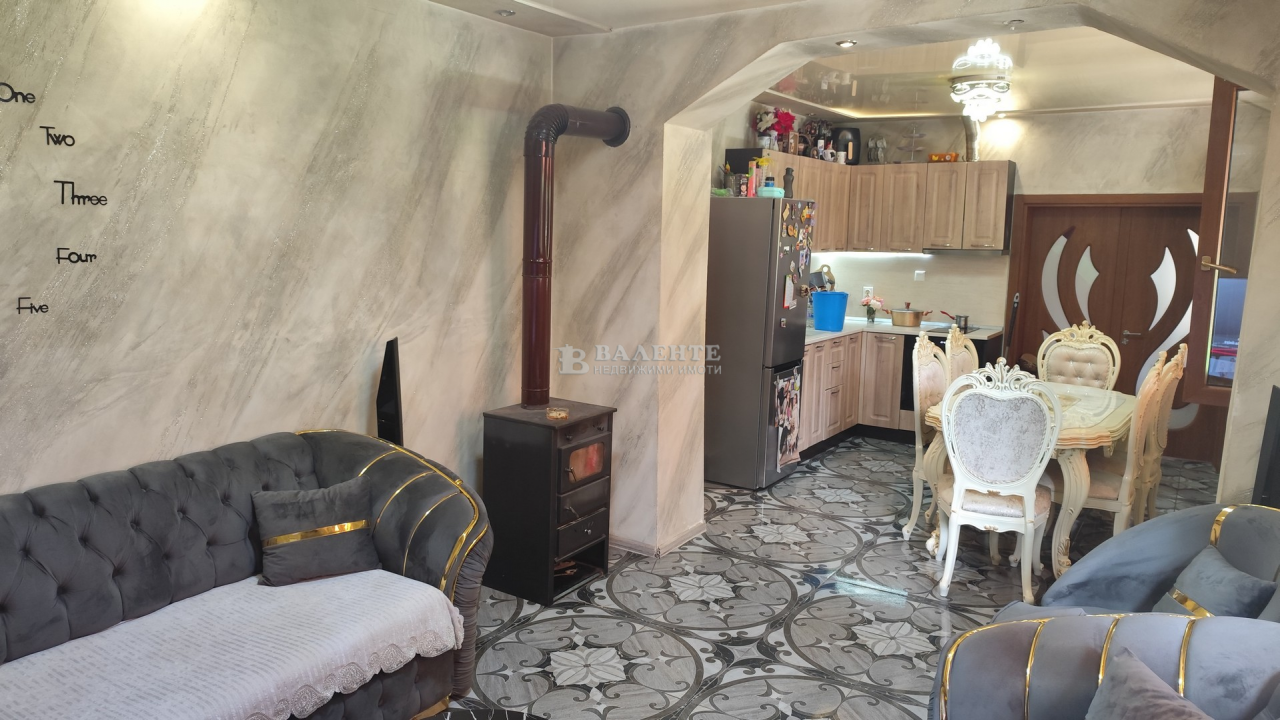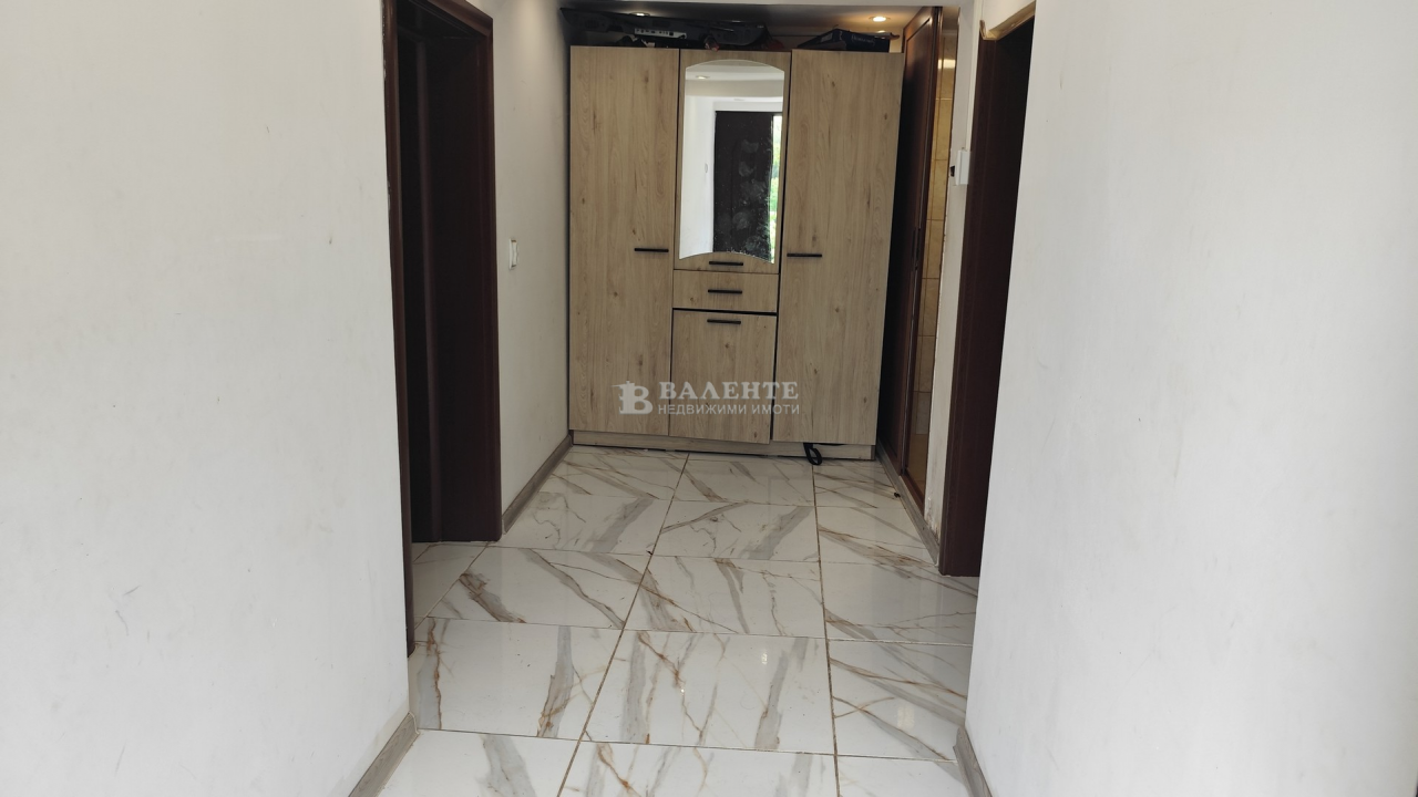 Състояние: под-теракота/ламиниран паркет, стени-гипсова шпакловка/декоративна мазилка, таван-винил.