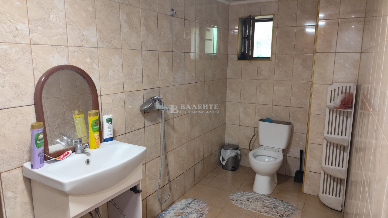 Състояние на първи етаж: под-ламиран паркет(коридор-теракота), стени-гипсова шпакловка/латекс, таван-гипсова шпакловка/латекс.