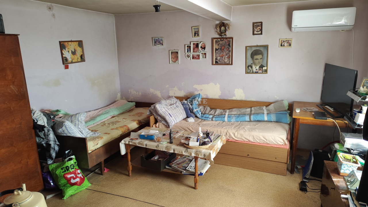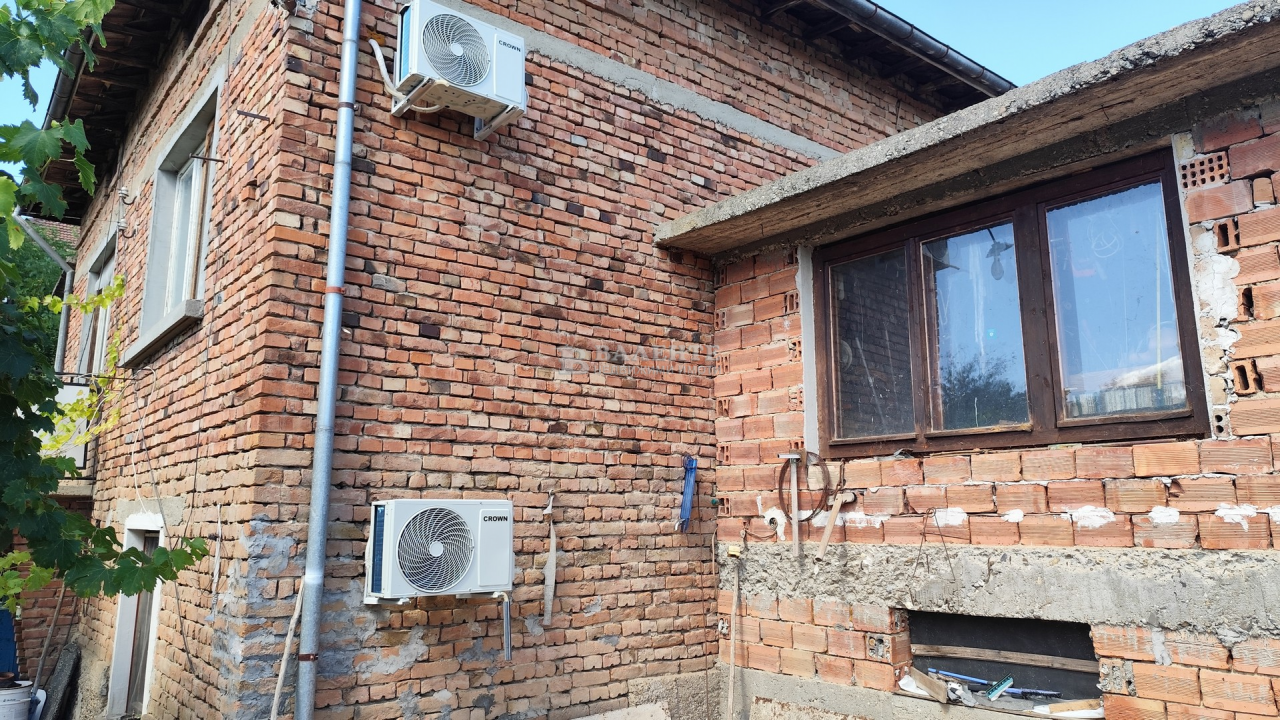 II-ри етаж: трапезария с бокс, три спални и баня с тоалетна. ВиК и канализация на цялата площ на къщата и парно с котел на дърва и въглища. Гараж с канап и стая към него.
