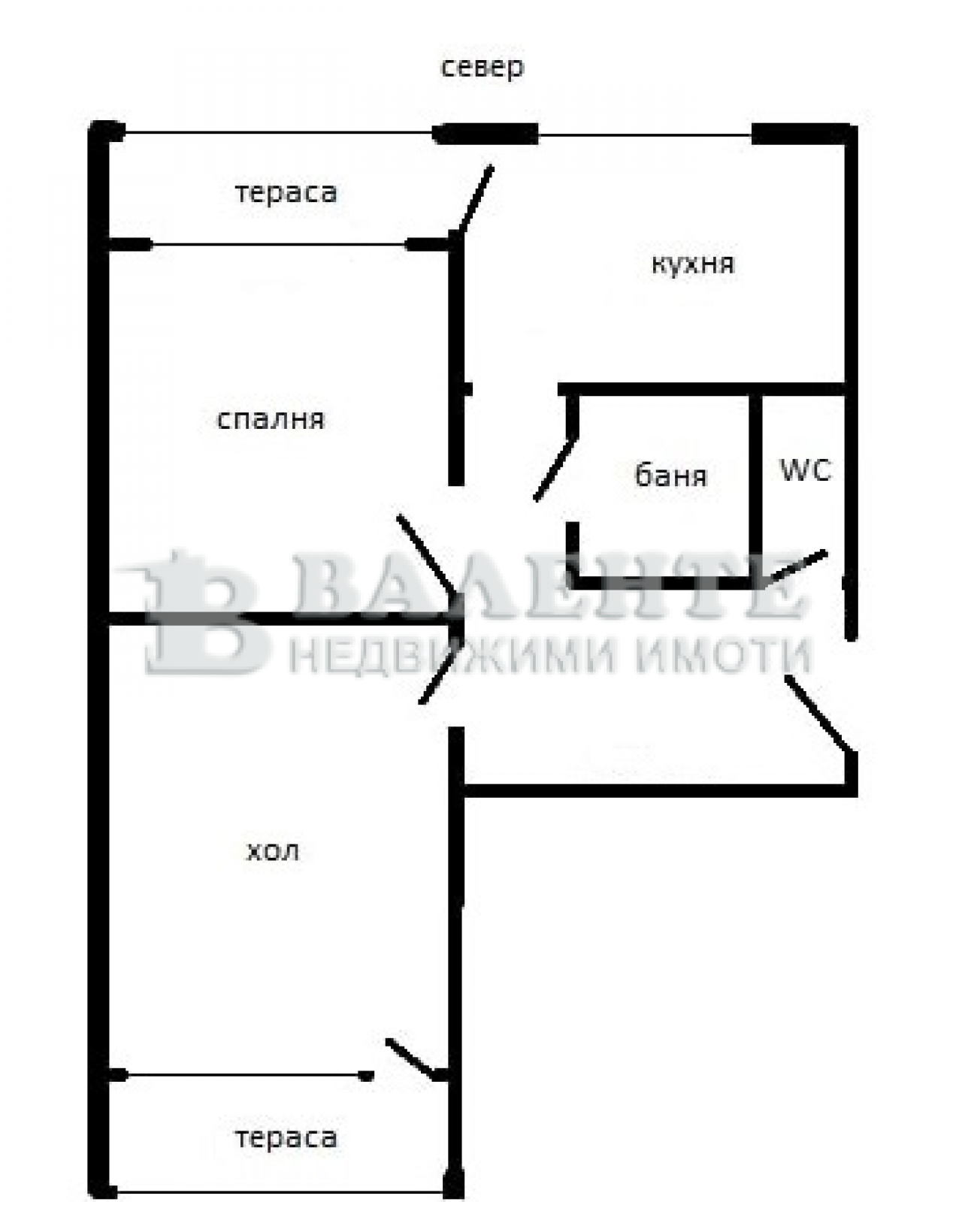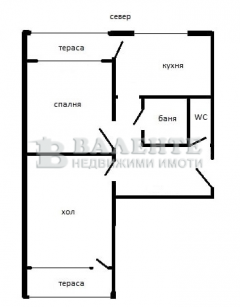 Разпределение: спалня, хол, кухня, баня, тоалетна, коридор и две тераси. Изложние: север/юг.