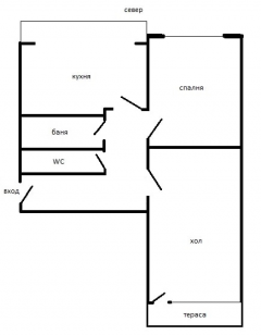 Разпределение: спалня, хол, кухня, коридор, баня, тоалетна и две тераси. Изложение: север/юг.