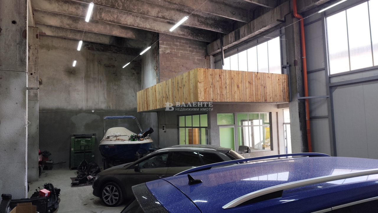 Състоящо се от работно помещение 130 м2, офис и санитарен възел. Трифазен ток. Вода. Височина 6 метра.